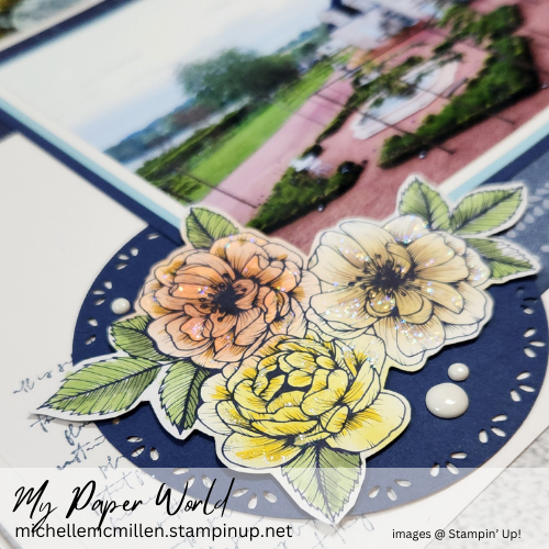 · Embellishments: Fussy cut flowers from a sheet of Serene Love