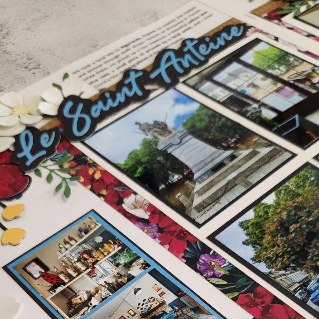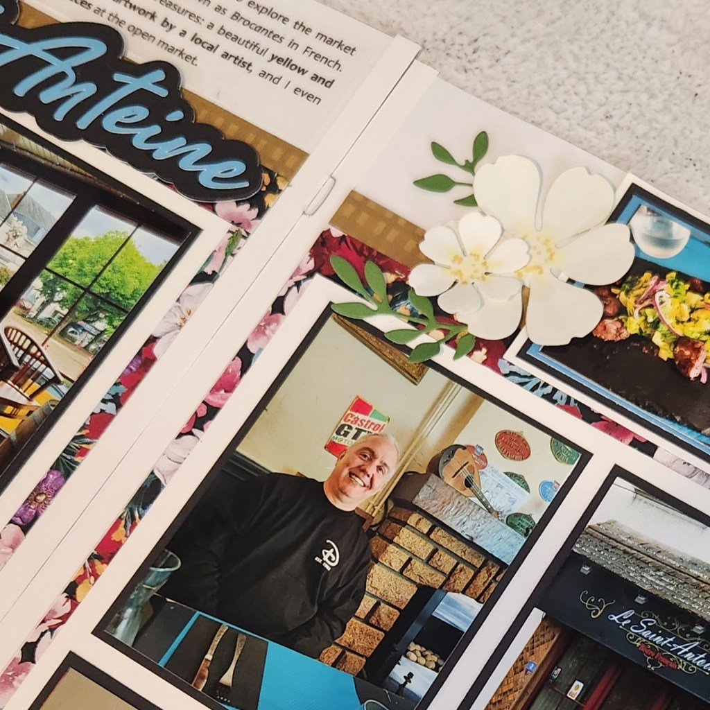 I loved creating this 2-page scrapbook layout featuring Stampin’ Up! Regal Winter and Season of Elegance DSP—the colors matched perfectly with the tones of Aigurande and the charming Le Saint Antoine Bistro Français! ![]()