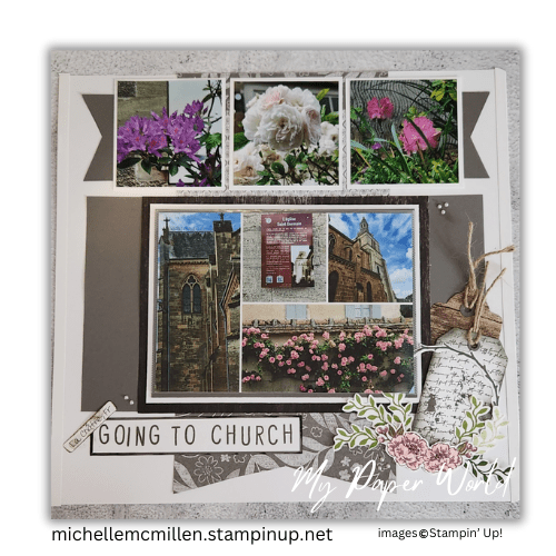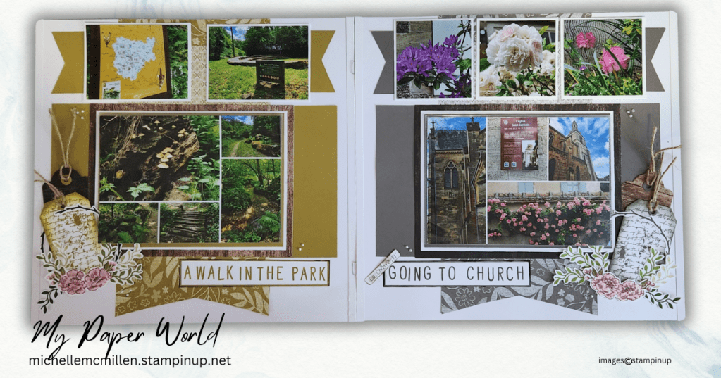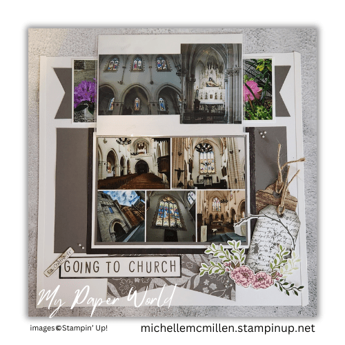 #ScrapbookInspiration #NatureScrapbook #MemoryKeeping #StampinUp #ScrapbookLayout #MiddleEarthFeels #LaChatre #HistoricChurch #TravelScrapbook
